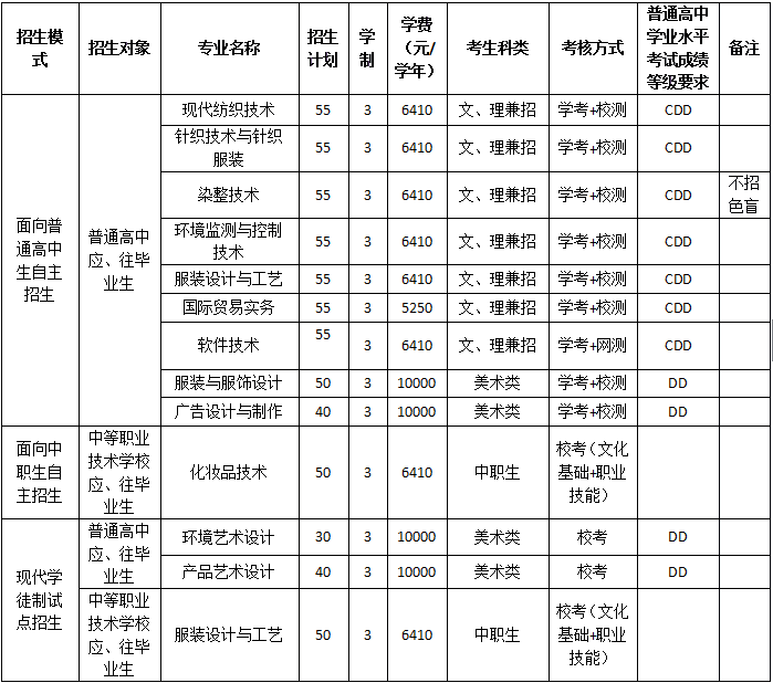 3、报考服装与服饰设计、广告设计与制作、环境艺术设计(现代学徒制)、产品艺术设计(现代学徒制)专业的普通高中考生:只招美术类考生,参加普通高中学业水平三门考试科目的考试且两门成绩达到D级及以上等级,且2018年广东省美术术科统考成绩达到160分及以上。